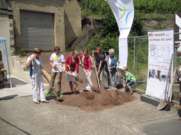 Vertreterinnen und Vertreter der künftigen Nutzergruppen machen den 1. Spatenstich komplett.