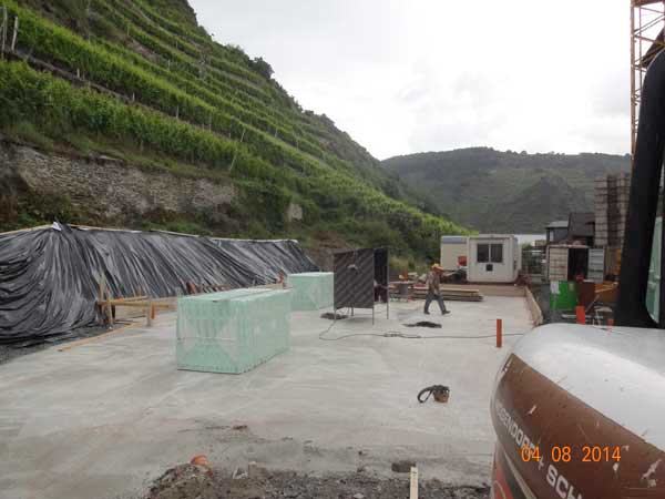 Die Einschalung sowie die Wärmedämmarbeiten für die Bodenplatte wurden begonnen.
