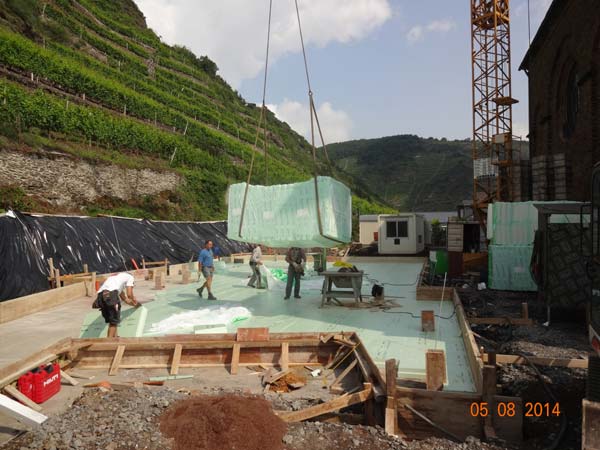 Die Einschalung sowie die Wärmedämmung für die Bodenplatte sind fast fertig.