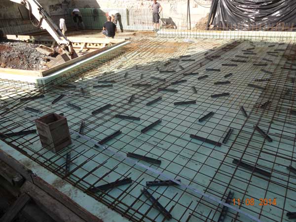 Heute wollen die Eisenleger fertig werden. Morgen wird dann betoniert.