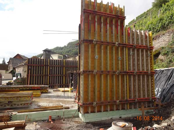 Die vordere und mittlere Wand ist fertig eingeschalt.