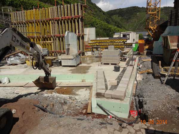 Die Ein- bzw. Ausschalarbeiten werden fortgesetzt, die Maurerarbeiten wurden begonnen.