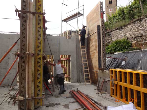 Außenwand wird zum betonieren vorbereitet.