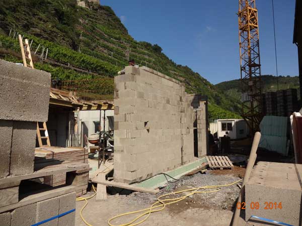 Die Mauern in vorderen Bereich haben fast Endhöhe erreicht.
