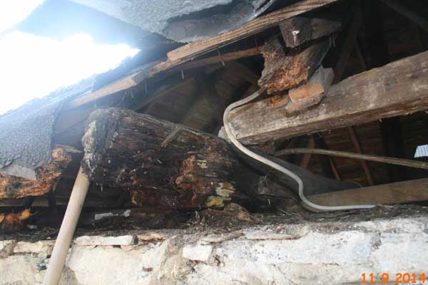 Dokumentation Schäden am Dachstuhl des alten Feuerwehrhauses.