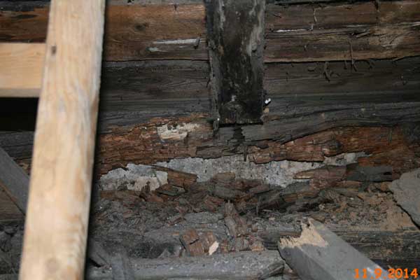 Dokumentation Schäden am Dachstuhl des alten Feuerwehrhauses.