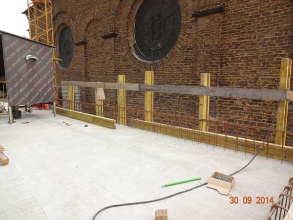 Die Attika im seitlichen Bereich wird eingeschalt.