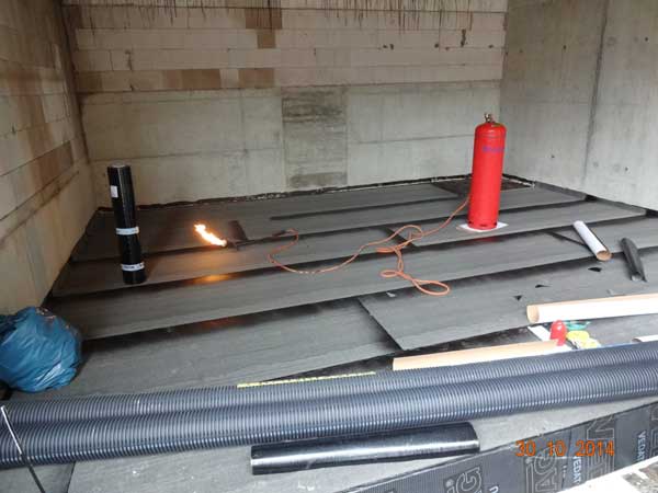Die ersten Schweißbahnen sind verlegt (Kleiner Saal).