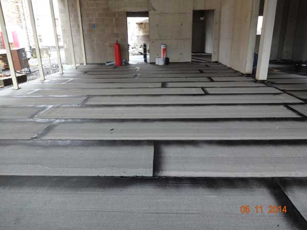 Die der Verlegung der Dampfsperre auf der Bodenplatte wurde begonnen, ...