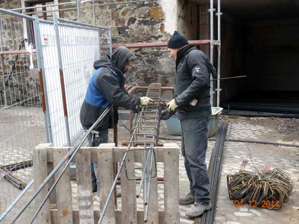 Die Bewehrung für den Rinanker wird vorgefertigt.