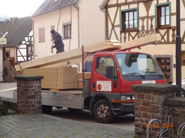Die Fa. hat begonnen, den Dachstuhl aufzurichten.