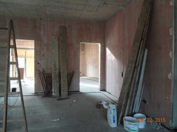 Die Wände wurden mit einer Grundierung für die Verputzung vorbereitet.