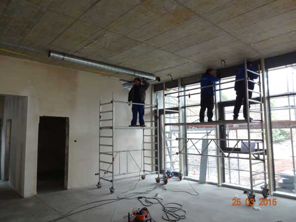 Die Heizungsbauer haben mit dem Einbau des Lüftungssystems begonnen.