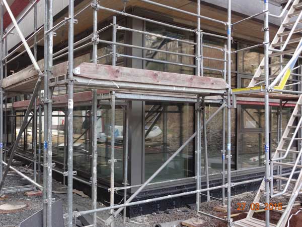 Die Fenster- und Fassadenelemente wurden eingebaut.