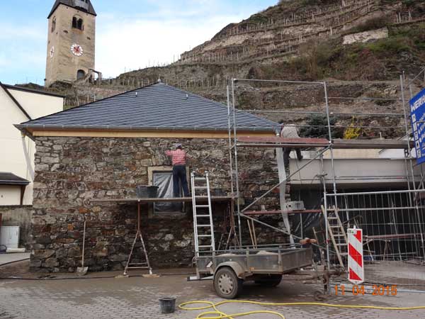 Die Verfugung der Bruchsteinwand wurde am 10.4. begonnen ....
