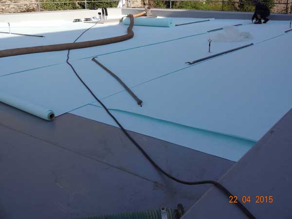 Zunächst wurde eine doppellagige Glasfließmatte aufgelegt.