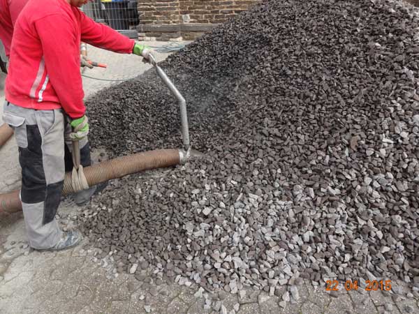 Der Schotter wird pneumatisch geladen ....