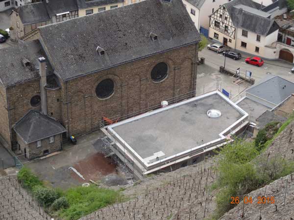 Das Dach passt sich gut in die Umgebung ein (Vordergrund Standfläche Wärmetauscher).