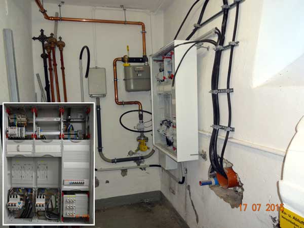 Hauptverteilerkasten im Heizungskeller unter der Sakristei.