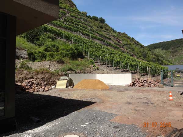Natursteine und Zement für die Stützmauer wurden angeliefert.