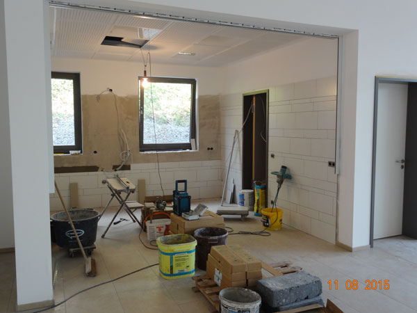Die Küche wird gefliest.