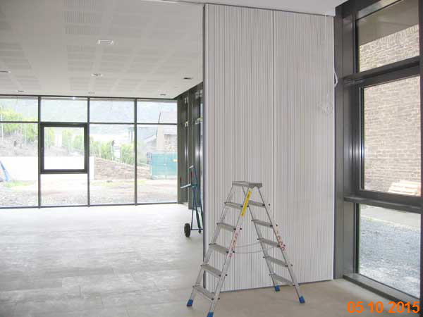 Einbau der mobilen Trennwand (Gruppenraumseite Akustikplatte = Sprachnutzung optimiert).