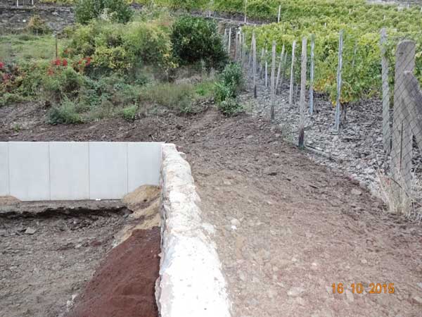 Die StÜtzmauern wurden mit dem vor Ort anstehenden Hangschotter hinterfüllt.