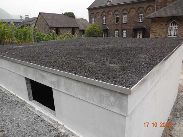 Die Beschotterung der Dachfläche wurde aufgebracht.