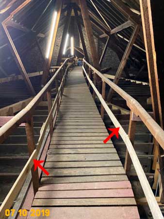 Der Wartungssteg auf dem Kirchengewölbe wurde entsprechend ...