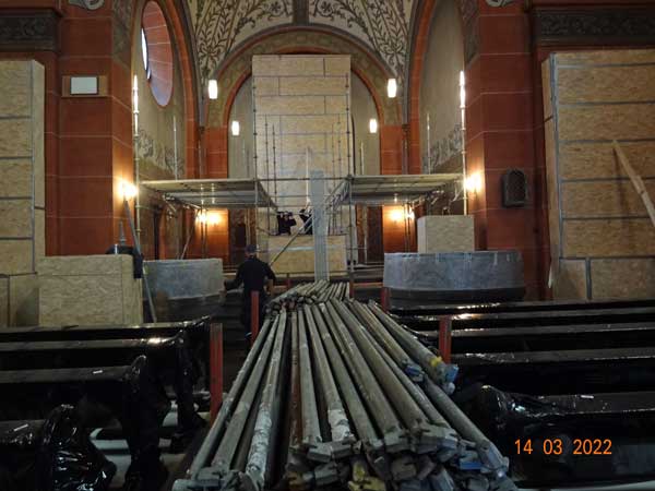 mit dem Aufbau im Chor der Kirche begonnen.