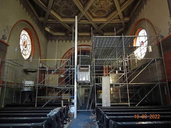 Ruhe am Samstag. In der Mitte Lastenaufzug.