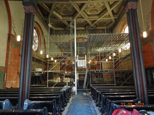 Begin der 2. Montagewoche. Der Schalldeckel über der Kanzel ist abmontiert.