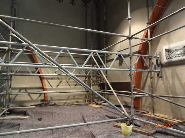 Zur Entlastung der Empore wurden Gitterträger eingebaut.