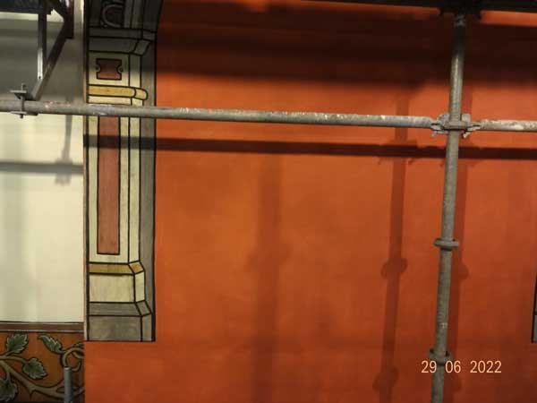 Bereits lasierte Pfeiler zwischen den Fenstern.