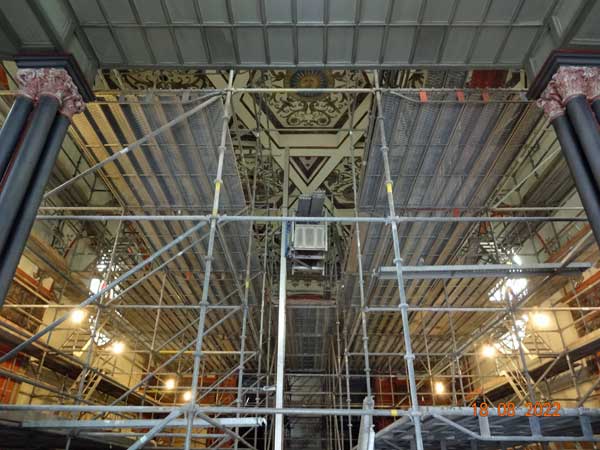 gibt langsam den Blich auf die restaurierte Decke frei.