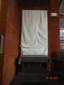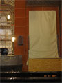 Aushangkastens der Pfarrgemeinde, der während der Errichtung des