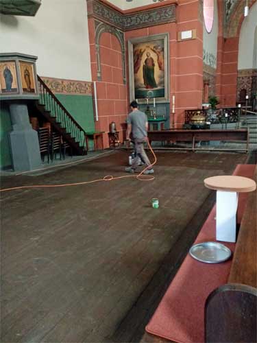 Endlich: Die letzten Arbeiten an den vorderen Bankpodesten.